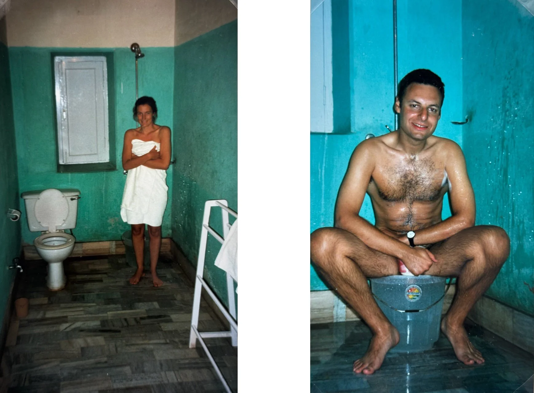 The photographs included here are from my trusty Canon cameras, alongside Alex’s more candid shots — including one of me taking a bucket bath.
