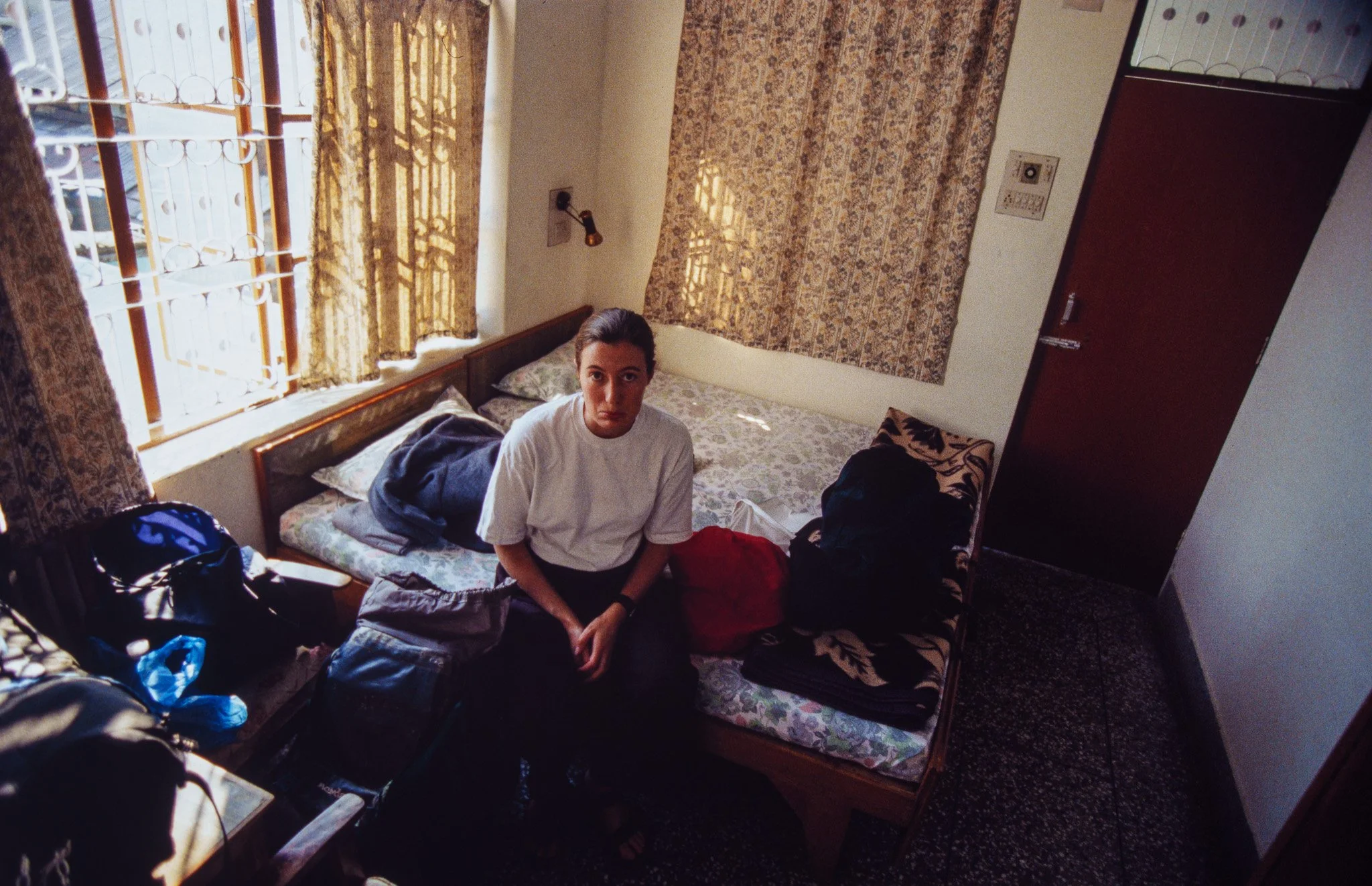 A strange Englishwoman with a bizarrely high voice, dressed in thick woollen tights and other eccentric clothes, came in and started arguing with the owner, demanding to make her own coffee. She was obviously barking mad. Also in the restaurant were a number of Westerners in their forties and fifties, dressed in similar odd garb. One, a tall man with long grey hair, was wearing a turban. We decided that one night at 190 rupees was quite enough, lest we end up looking as sullen as the travellers around us.
