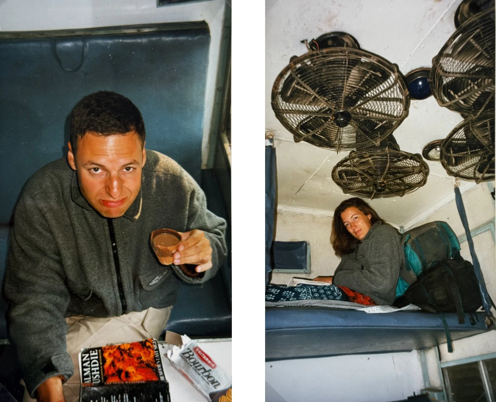 The journey was really quite relaxing. We lounged, lay, sat, and leaned on our bunks — Alex dozing over V. S. Naipaul, me enthralled by The Moor’s Last Sigh. The loo was another matter: an elephant-footed hole in the floor with the tracks (sometimes) rushing by beneath, but otherwise we were comfortable.